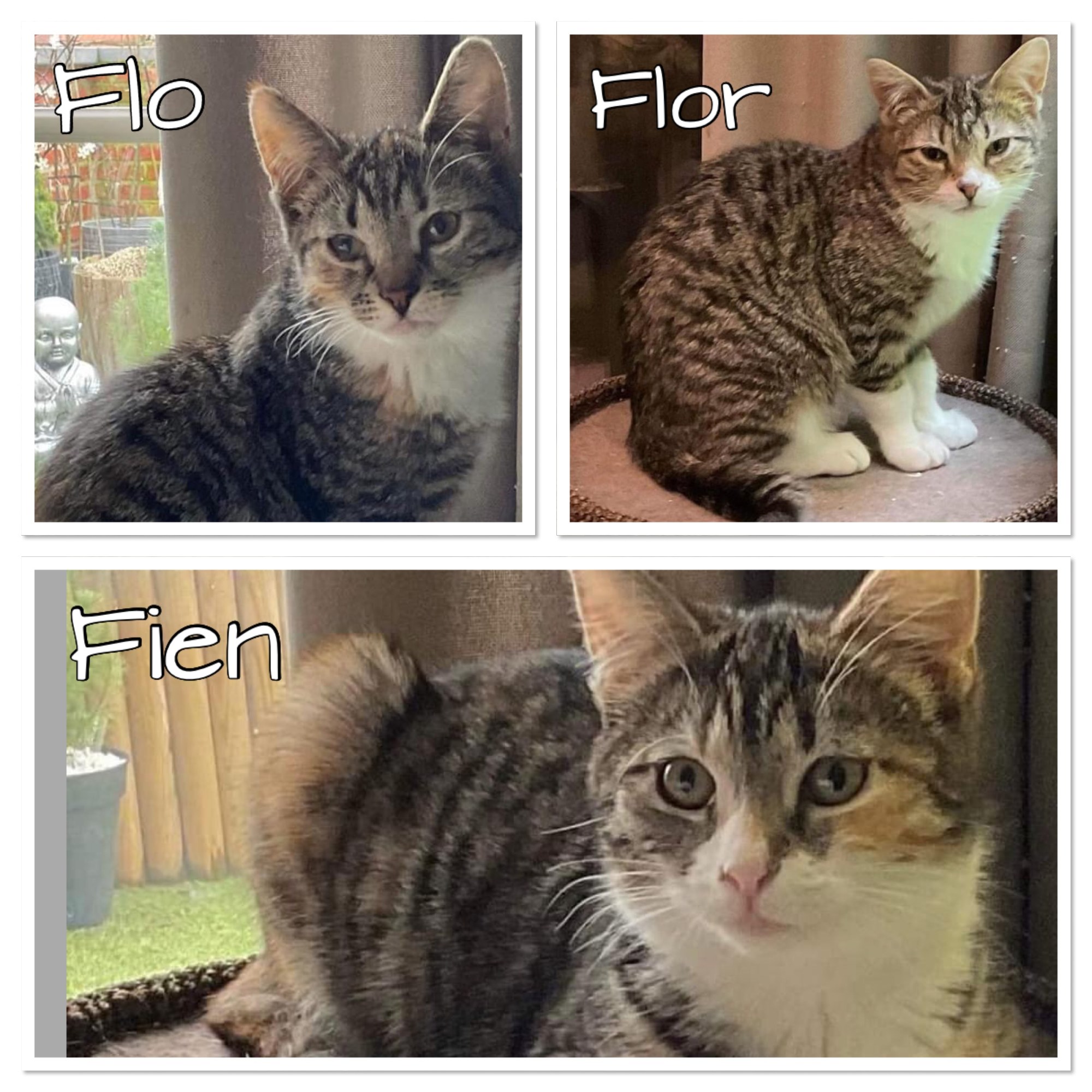 Een katertje en 2 katinnetjes van ong. 5 maanden oud. We zijn klein van gestalte. We zijn alle 3 echte speelvogels en zijn graag bij je in de buurt. Het enige wat we helemaal nog niet leuk vinden is aaien of optillen, maar we liggen wel heel graag bij je in de zetel of bed (bed hoeft niet als we een zacht mandje krijgen).