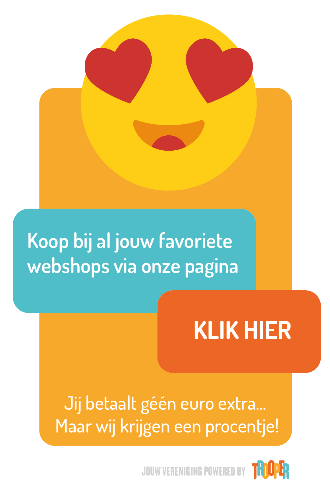 Telkens jij iets koopt via Trooper gaat er een percentje naar de kas van ‘jouw favoriete vereniging ’t Gouden Poezenmandje. Weet dat bijna alle bekende en minder bekende shops erop staan en dat jij geen rosse eurocent extra betaalt.